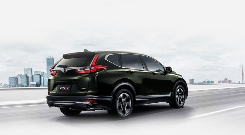 Phía trên cao ở đuôi xe, hãng mẹ tích hợp thêm cánh hướng gió phía sau. Với cánh hướng gió này, thì cái lưng gù của CRV vốn gây nhiều tranh cãi đã biến mất. Trên cánh hướng gió, Honda cũng bổ sung thêm đèn phanh và trên nóc còn là ăng-ten vây cá cùng màu thân xe. Phía dưới, mẫu SUV này được trang bị ống xả kép mạ chrome, cho cảm giác thể thao và đa dụng hơn. Hai bên ổng xả là hai cụm đèn phản quang cỡ nhỏ. Ngoài ra, cản va phía sau thiết kế cũng khá cơ bắp và dày dặn. Tổng thể đuôi xe CRV rất bề thế và hiện đại.